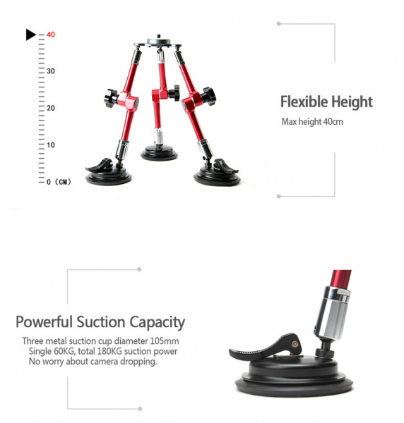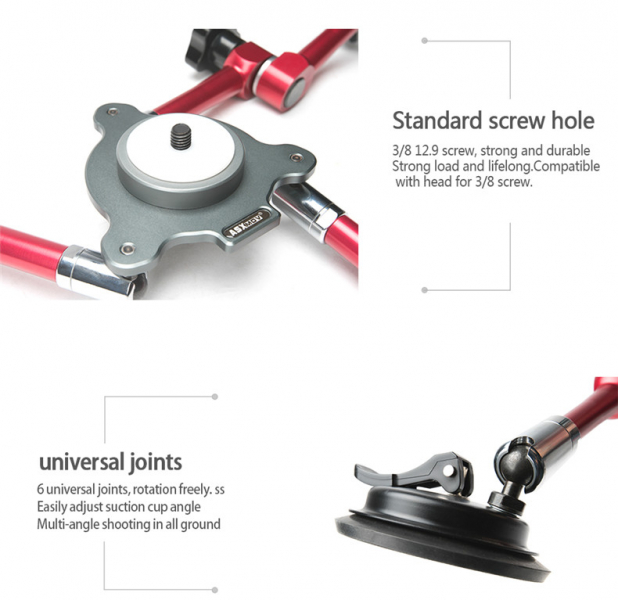 Штатив на присосках ASXMOV XP-03 предназначен для работы с зеркальными и видеокамерами весом до 50 кг, позволяет зафиксировать камеру на корпусе автомобиля.