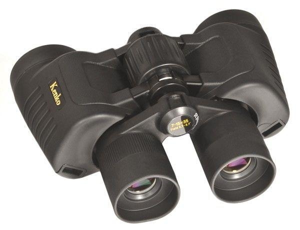 Панкратический бинокль KENKO ULTRA VIEW 7-15x35 представляет собой комбинацию биноклей с различной кратностью и даёт возможность наблюдателю оценить все преимущества такого использования. Изменение основных параметров бинокля (диаметр выходного зрачка, угловое поле зрения, светосила) с изменением увеличения позволяет применять KENKO ULTRA VIEW 7-15x35 при проведении наблюдений в черте города или на открытой местности, во время охоты или спортивных состязаний. Панкратический бинокль KENKO ULTRA VIEW 7-15х35 – это бинокль с переменным увеличением от 7 до 15 крат, что позволяет наблюдать за объектами, движущимися по сложной траектории на расстоянии от 10 м, не меняя местоположения наблюдателя. Для удобства работы с прибором и настройки его под базу глаз наблюдателя воспользуйтесь механизмом регулировки межзрачкового расстояния (в пределах 60-70 мм), барабаном центральной фокусировки (для настройки фокуса одновременно на оба глаза) и встроенной функцией диоптрийной коррекции (в интервале от -4 до +4 дптр). Переход от одного увеличения к другому осуществляется с помощью рычажкового механизма (рычажок устанавливается напротив соответствующего показателя увеличения 7, 9, 11, 13 или 15 крат - цифровой шкалы, расположенной на внутренней стороне правого окуляра). После каждого изменения кратности (увеличения) необходимо осуществлять повторную фокусировку изображения. Прочный корпус из сплавов алюминия защищает оптическую систему бинокля KENKO ULTRA VIEW 7-15x35 от механических повреждений. Резиновое покрытие предотвращает выскальзывание и помогает надёжно удерживать прибор даже во влажных руках. Использование классической оптической системы на базе Porro призм помогает получить объёмное изображение при минимальных потерях света. Рубиновое покрытие линз повышает контрастность изображений в сумерках. Все оптические стекла выполнены с использованием эко-технологий без примесей мышьяка и свинца.