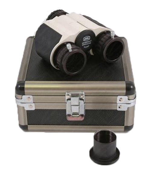 Призменный делитель изображения в металлической оправе, устанавливаемый в окулярный узел телескопа и дающий возможность наблюдать двумя глазами. С такой насадкой гораздо комфортнее вести продолжительные наблюдения: во-первых, глаза меньше устают, а во-вторых, добавляется контрастность и детали наблюдаемому объекту.