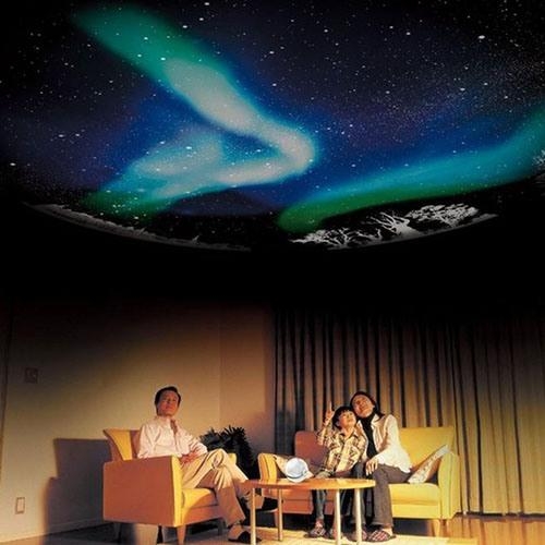 Планетарий "HomeStar Aurora Alaska" отличается от аналогов тем, что проецирует не обычное звездное небо, а настоящее "световое шоу": сначала Вы увидите величественное зрелище предзакатного небосвода, когда часть неба еще подсвечена, а на другой уже сверкают звездные россыпи, затем солнце погаснет и звезды загорятся еще ярче, а в финале Вам откроется и вовсе потрясающее зрелище — северное сияние, картина, доступная только жителям Заполярья и удивительное по своей красоте небо Аляски.