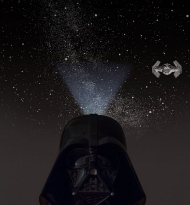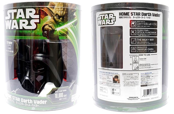 Необычный планетарий, изготовленный в форме шлема одного из главных героев сериала "Звездные войны", Дарта Вейдера. Позволяет привнести эстетику этого знаменитого фильма в Ваш дом, удивить и порадовать поклонников бессмертной картины. Планетарий "HomeStar Darth Vader" проецирует не менее 10 тыс. небесных объектов, гарантируя завораживающее зрелище глубин космоса прямо на потолке квартиры. Помимо звезд прибор формирует изображение имперского истребителя TIE, добавляя проекции "атмосферности".