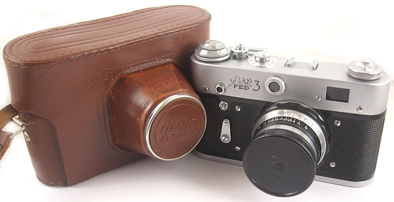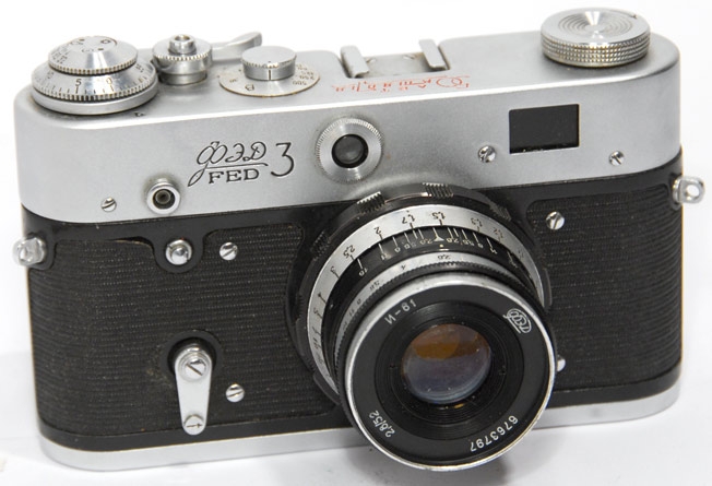 Фотоаппарат ФЭД-3 представляет собой дальномерный фотоаппарат в литом алюминиевом корпусе, снабженный оптическим дальномером, совмещенным с видоискателем. Камера рассчитана на стандартную 35-мм перфорированную пленку и формат кадра 24x36 мм. Производился Харьковским производственным машиностроительным объединением «ФЭД» с 1961 по 1979 год. По сравнению с предыдущей моделью ФЭД-2 был расширен диапазон выдержек, добавлены 1/15, 1/8, 1/4, 1/2 и 1 секунда, в связи с чем вертикальный размер камеры увеличился, а база дальномера уменьшилась до 41мм Камера была оборудована тремя типами объективов в зависимости от года выпуска (Индустар-26М 2,8/50мм, Индустар-61 2,8/53 мм или Индустар-61Л/Д 2,8/53). Варианты выпуска отличались формой окна видоискателя, наличием головки взвода или рычажным взводом, и надписью ФЭД-3. Разъемный корпус облегчает зарядку фотоаппарата пленкой, упрощает проверку подгонки к аппарату сменных объективов, позволяет легко разряжать камеру, не засняв полностью всю пленку. Дальномер аппарата механически связан с объективом, это обеспечивает точную фокусировку объектива при совмещении изображений в дальномере. Конструкция фотоаппарата позволяет применять сменные объективы и подключать импульсные лампы-вспышки. В нижней части камеры расположено штативное гнездо для установки аппарата на штативе и для закрепления его в футляре.