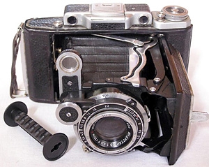ОписаниеФотоаппарат Москва-4 – представляет собой советский среднеформатный дальномерный фотоаппарат, выпускавшийся с 1955 по 1958 год Красногорским механическим заводом. Камера имеет складной стальной корпус покрытый дерматином. Объектив камеры выдвигается автоматически после откидывания передней панели с помощью рычажной системы, с корпусом объектив соединяется тканевым мехом. Задняя стенка фотоаппарата открывается на петлях. Автоспуск у данной модели отсутствует, зато имеется синхроконтакт, выдержка – любая. Камера рассчитана на работу с пленкой типа 120 с размером кадра 6×9 или 6×6 см, всего получается 8 кадров. Для работы с размером кадра или 6×6 см в фильмовый канал вставляется специальная рамка, входящая в комплект аппарата. Присутствует также блокировка от двойного экспонирования кадра. Характеристики