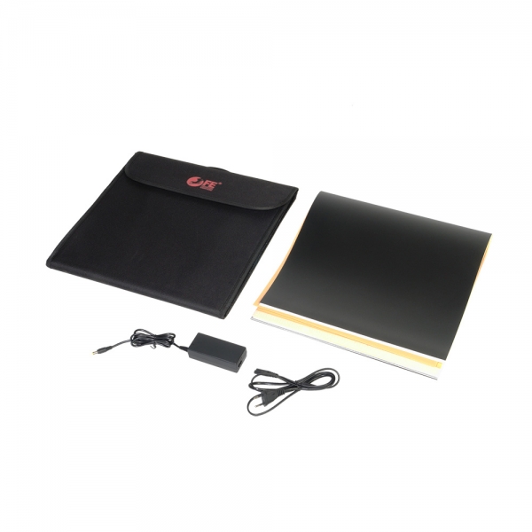 Фотобокс Falcon Eyes Light Cube 40 LED со светодиодным освещением Falcon Eyes Light Cube 40 LED - автономная мини-студия для фотографирования небольших объектов, внутренний размер фотобокса 40х40х40 см. Используется в предметной съемке для печатных каталогов, интернет-магазинов, Конструкция разворачивается в квадратный легкий фотобокс и оборудована своим собственным источника света с цветовой температурой 5500К. Внутренние серебристые текстурированные стенки равномерно заполняют куб отраженным светом от двух светодиодных линеек (по 28 светодиодов на каждой). Светодиодные линейки установлены на верхней крышке фотобокса, их можно легко переместить вдоль крышки благодаря системе липких лент (велкро). Монтаж конструкции осуществляется также с помощью липких лент, расположенных по периметру стенок. В сложенном виде занимает мало места, складывается в кейс с ручкой. Light Cube 40 LED имеет откидную переднюю панель со встроенным съемочным окном 18х28 см и отверстием диаметром 8,5 см, а также верхний люк диаметром 11 см для съемки с верхнего ракурса. Фотобокс поставляется с черным, белым и оранжевым пластиковыми фонами для размещения разных цветных предметов. Данная модель отличается от ранее представленных. В новых фотобоксах появился адаптер для регулировки яркости.
