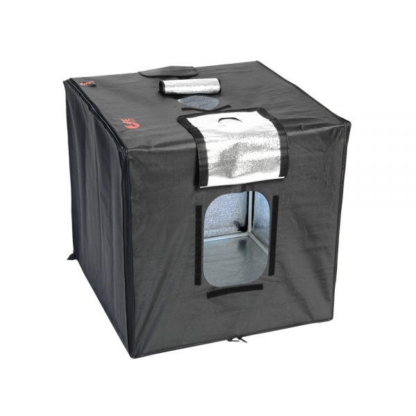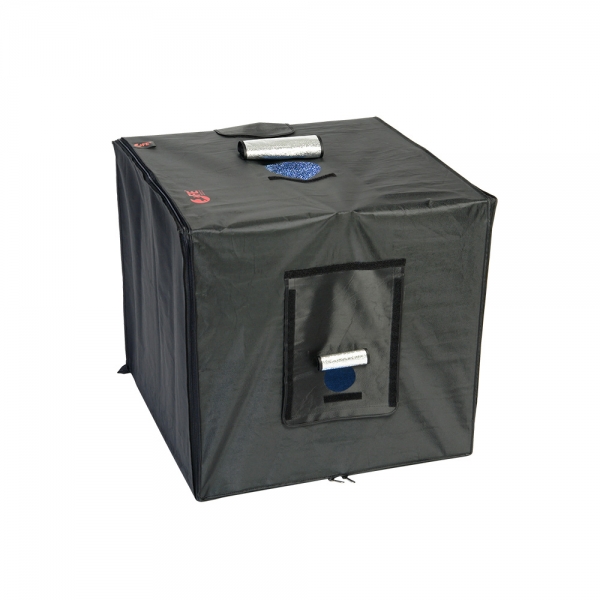 Фотобокс Falcon Eyes Macro Studio 60 LED со светодиодным освещением Комплексное решение для предметной съемки Falcon Eyes Macro Studio 60 LED это комплексное портативное осветительное решение для предметной съемки небольших и средних объектов, внутренний размер фотобокса 60х60х60 см. Четыре светодиодные планки и беспроводной пульт дистанционного управления позволяют профессионально управлять светом – мощность каждой планки регулируется независимо, а пульт позволяет запомнить до 8 настроек. Универсальный каркас Каркас фотобокса Macro Studio 60 LED представляет собой систему алюминиевых трубок, которые быстро соединяются между собой с помощью входящих в комплект угловых креплений. На 4 верхние трубки устанавливаются светодиодные планки. Входящий в комплект рассеиватель можно установить на верхнюю часть каркаса перед светодиодами, это позволит смягчить светотеневой переход. Стенки с серебристыми внутренними поверхностями соединяются между собой с помощью молнии и плотно прилегают к каркасу. На передней стенке расположено окно 20х30 см с отверстием диаметром 7 см на крышке, на верхней стенке находится окно диаметром 13 см с крышкой. При необходимости, переднюю и боковые стенки можно откинуть, а вместо боковых стенок на каркасе можно закрепить рассеиватели (дополнительные специализированные рассеиватели приобретаются отдельно). Беспроводной пульт дистанционного управления Контроллер способен сохранять в памяти до восьми вариантов световых схем, это позволит быстро переключаться между различными задачами и в любой момент продолжить прерванную съемку без предварительной настройки. Большой ЖК экран с подсветкой отображает всю необходимую информацию – активный режим работы, номер радиоканала, уровень яркости каждой планки, схему расположения планок в фотобоксе и заряд элементов питания. Режим Flash Светодиодные планки, входящие в комплект данного софтбокса, могут работать в режиме импульсного источника света с кратковременным увеличением мощности, это дает возможность кратковременно увеличить их мощность на один шаг экспозиции. При включении режима Flash и подготовке объекта к съемке светодиодные планки работают как источник пилотного света, это поможет оценить световой рисунок в момент срабатывания вспышки.