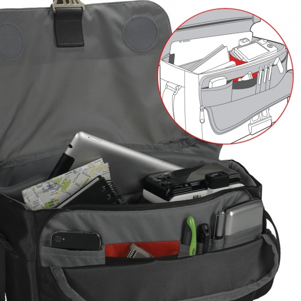 Повседневная сумка для беззеркальной фотокамеры с установленным объективом, 11` ноутбука, аксессуаров и личных вещей. Для оперативного доступа к оборудованию предусмотрена молния в верхней части сумки.