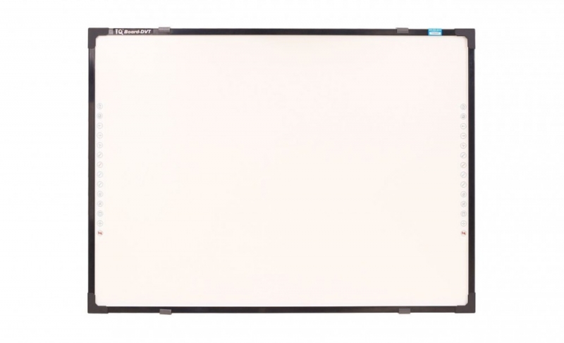Интерактивная доска IQBoard DVT TN087 Новая интерактивная доска IQBoard DVT TN087 поддерживает одновременную работу до 5 пользователей, иначе говоря, в один момент времени доска может воспринимать до 10 касаний ее поверхности. Доска IQBoard DVT TN087 построена на базе оптической технологии цифровых камер, когда по углам расставлены миникамеры, считывающие положение элемента управления (пальца, указки и проч.) на поверхности доски. В интерактивную доску IQBoard DVT TN087 встроена функция распознавания жестов, а по обоим сторонам доски расположено по 14 кнопок для быстрого вызова часто используемых функций и приложений. Поверхности устройства выполнена из антибликового полимерного материала, которое оптимизировано для проецирования. В качестве бонуса, IQBoard DVT TN087 поддерживает возможность рисования стандартными маркерами сухого стирания на поверхности доски.