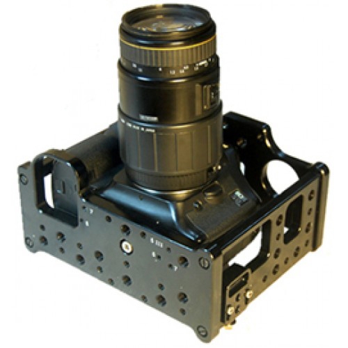 На сегодняшний день этот каркас пользуется самым большим спросом среди пользователей профессиональных видеокамер. Специально для них был разработан этот легкий гибкий каркас, который отвечает всем требованиям видео оператора. Обновленная версия модели с площадкой для установки аккумулятора и адаптера для мини стержней подойдет всем, кто работает с видеокамерой: от новичка и любителя до профессионала. Proaim DSLR Cage - это легковесная конструкция, выполненная из черного анодированного алюминия. Аксессуары крепятся к каркасу при помощи винтов 1/4, для которых предусмотрено 20 отверстий, и 3/8, для которых предусмотрено 16 отверстий. Материал каркаса: черный анодированный алюминий. На это устройсво, помимо самой камеры, можно крепить целый ряд дополнительных устройств: LCD монитор, аккумулятор, электронный видоискатель, осветительные приборы и т.д.