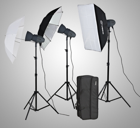 Универсальный комплект импульсного света Visico VL PLUS 200 Valued kit с сумкой – надежный универсальный комплект импульсного освещения для фотосъемки на базе 3-х моноблоков Visico VL PLUS 200 Studio flash общей мощностью 600 Дж, байонетное крепление Bowens.