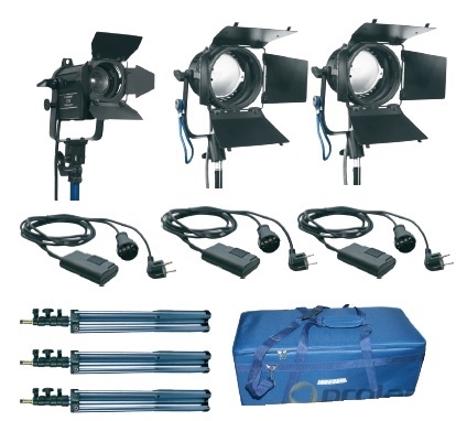 Мобильный осветительный комплект Logocam 750/SSF DIM KIT оптимален для работы, как на выезде, так и в студии. Состоит из трех компактных галогенных светильников: два заливающиx Logocam Semi-D 300 мощностью 300 Вт со шторками и защитной сеткой, направленный Logocam Fresnel 150 мощностью 150 Вт со шторками и линзой Френеля. Каждый прибор оснащен внешним диммером. Поставляется в транспортном кофре с водоотталкивающей пропиткой. Подойдет для решения большинства типовых задач. питание 220 В. Вес комплекта 8 кг. Состав комплекта: