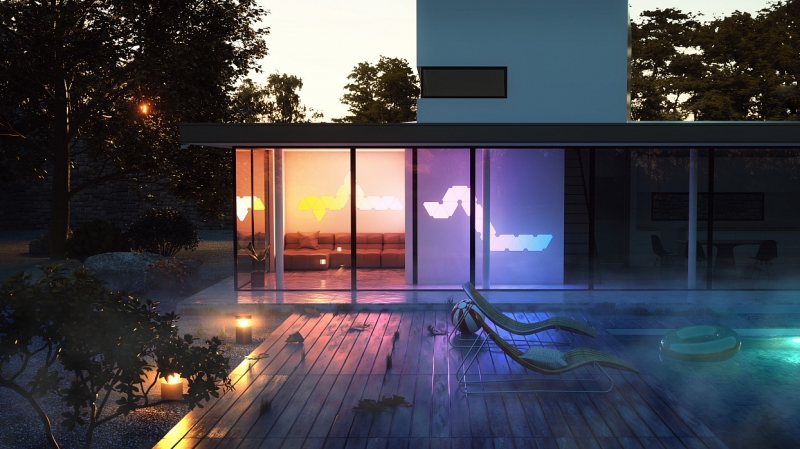 Комплект умных ламп Nanoleaf Aurora c дополнительным модулем Nanoleaf Rhythm Система освещения Nanoleaf Aurora c дополнительным модулем Nanoleaf Rhythm позволит вам дополнить вашу осветительную инсталляцию. Набор состоит из девяти RGBW-панелей, монтажного комплекта для них и дополнительного модуля, который позволяет генерировать подсветку Nanoleaf Aurora в зависимости от проигрываемой музыки на устройстве iOS. Каждая панель способна воспроизводить до 16.7 млн оттенков, обеспечивая безграничный полет фантазии в создании цветового оформления помещения. Модуль Nanoleaf Rhythm может подключаться к домашней акустике посредством разъема 3.5 мм. RGBW-панели для умного светильника Nanoleaf Aurora выполнены в форме равносторонних треугольников со сторонами по 210 мм. Соединяются они при помощи специальных креплений, позволяющих использовать любую грань. Такое соединение дает возможность выстраивать 2D-фигуры любой сложности. Модуль Nanoleaf Rhythm полностью соответствует дизайну системы освещения Nanoleaf Aurora и потому идеально сочетается с ней. Он позволяет проигрывать светомузыку в такт той, что играет на устройстве iOS, Android или на любой домашней акустике с разъемом 3.5 мм. Система освещения Nanoleaf Aurora c дополнительным модулем Nanoleaf Rhythm позволяет вам выделить элементы интерьера в любом помещении, а также менять освещение в такт проигрываемой музыке. Практичное крепление и удобное соединение обеспечат широкие возможности инсталляции, позволив разметить RGBW-панели как на стенах, так и на потолке или предметах мебели. Каждая панель может быть отрегулирована индивидуально при помощи форменного приложения Nanoleaf App.