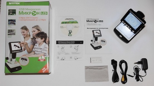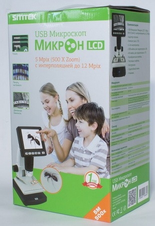 "Микрон LCD" — идеальный инструмент преподавателейБольшой и тяжелый ноутбук больше не нужен! Достаточно взять с собой микроскоп и подключить к видеопроектору (телевизору), чтобы "озадачить" студентов или четко и внятно объяснить им новый учебный материал. Соединение микроскопа с внешним приемников видеосигнала осуществляется по стандартному AV-интерфейсу. Цифровой микроскоп "Микрон LCD" может работать полностью автономноВ отличие от многих других цифровых микроскопов, которые используют вычислительные ресурсы компьютера для обработки проецируемой картинки, "Микрон LCD" способен работать совершенно самостоятельно около 2 часов, пока не разрядится аккумулятор. Управление процессом наблюдения происходит при помощи встроенных в корпус прибора кнопок. Пользуясь ими, можно включать/выключать дисплей, снимать фото/видео, изменять настройки и пр. Ручная регулировка увеличения и фокусировкиМикроскоп оснащен ручным механизмом увеличения и фокусировки для получения максимально четкого изображения. Настройка фокусировки производится вращением колесика на корпусе микроскопа. Это позволяет максимально адаптировать микроскоп для наблюдения предметов разных размеров. Четырехкратный цифровой Zoom для более детального осмотраДаже самые мелкие детали исследуемого объекта станут четко видны, если включить цифровое приближение. CMOS камера микроскопа имеет интерполированное разрешение в 12 Мп, чего вполне достаточно, чтобы приблизить к себе трудноразличимые участки картинки без искажения изображения. Регулируемый предметный столик позволит тщательно рассмотреть объект при любом приближенииВ микроскопе установлен предметный столик с изменяемой высотой подъема. Рассматриваемые объекты закрепляется на нем с помощью двух пружинящих пластин из металла и при необходимости перемещаются вручную. Изменяя уровень подъема, можно добиться четкого изображения, даже если все настройки поставлены на максимум. Измеряйте габариты исследуемого объекта с точностью до микрона!Программное обеспечение USB-микроскопа "Микрон LCD" позволяет измерять габариты исследуемого объекта с очень большой точностью. Для этого предназначена линейка для калибровки. Пользоваться ей достаточно просто — требуется всего лишь положить её рядом с предметом, который Вы рассматриваете в микроскоп. После наведения фокусировки нужно совместить деления виртуальной линейки в программе с делениями калибровочной линейки, которая будет видна на мониторе. Теперь программа будет автоматически показывать размеры исследуемого объекта. Удобное хранение отснятых данных на карте памяти MicroSD"Микрон LCD" поддерживает работу с microSD картами объемом до 32 Гб. Все видеоролики, фотографии, которые были сделаны в процессе работы, теперь можно переносить для дальнейшей обработки, не беря с собой микроскоп, а просто положив в карман крохотную карту памяти. Светодиодная подсветка обеспечивает нужный уровень освещения без дополнительного питанияМикроскоп оснащен подсветкой исследуемого объекта из 8 ярких светодиодов белого свечения. Они установлены в корпусе микроскопа вокруг линзы и направлены сверху вниз. Подсветка предназначена для традиционного наблюдения в микроскоп непрозрачных предметов (в падающем свете). Светодиоды отличаются низким энергопотреблением и качественным с