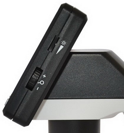 Мощный стационарный микроскоп, сочетающий отличную оптику и качественную камеру. Имеет устойчивую подставку, ручной механизм увеличения и фокусировки, поддержку записи фото и видео на карту MicroSD объемом до 32 Гб,автономное питание от встроенного аккумулятора и светодиодную подсветку. Позволяет определять размеры предметов. На большой ЖК-дисплей (8,9 см) выводится изображение объекта исследования. Для удобства просмотра по стандартному AV-интерфейсу изображение можно вывести на экран видеопроектора или телевизора. Данная модель микроскопа имеет ряд конструктивных особенностей: