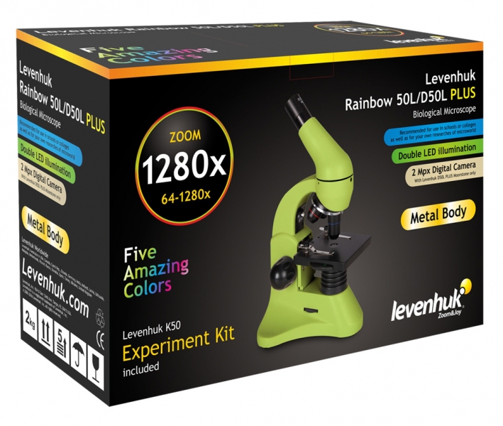Современные технологии позволяют значительно расширить возможности оптических приборов. С микроскопом Levenhuk Rainbow D50L PLUS Moonstone\Лунный камень можно не только изучать строение растительных и животных клеток или наблюдать за микроорганизмами, но и фиксировать свои исследования на цифровую камеру. В комплект входит все необходимое для проведения увлекательных экспериментов с микроскопом. Начинающий исследователь сможет легко поделиться результатами своих опытов – достаточно просто опубликовать фотографии или видеозаписи в социальных сетях. Качественная оптика В комплект входят три объектива: 4x, 10x и 40xs. В конструкции объектива с наибольшей кратностью (40xs) используется пружинный механизм, который защищает оптику от поломок. Даже если при фокусировке случайно задеть препарат объективом, он отодвинется и не повредит покровное стекло. Линза Барлоу позволяет удвоить кратность микроскопа с каждым окуляром. Максимальное увеличение при этом достигает 1280 крат! Оптика изготовлена из качественного стекла и покрыта просветляющим составом, который повышает светопропускание линз. Картинка получается контрастной и хорошо детализированной. Цифровая камера Микроскоп комплектуется современной цифровой камерой 2 Мпикс. Камера устанавливается в окулярный узел вместо окуляра и подключается к компьютеру. Увеличенное изображение препарата при этом выводится на монитор. Ребенок сможет показать родителям или друзьям особенно интересный препарат, а учитель или преподаватель – продемонстрировать ход эксперимента. И, конечно, с помощью камеры можно сделать фотографии и снимать видео! В комплект входит USB-кабель для соединения с ПК и питания камеры. Микроскоп совместим с Windows XP/Vista/7/8/10 (32 и 64 бит), процессор до 2,8 ГГц Intel Core 2 или выше, порт USB 2.0. Двойная подсветка Микроскоп снабжен двумя светодиодными осветителями. Нижняя подсветка используется для изучения прозрачных образцов – с ее помощью можно рассмотреть тончайшие срезы животных тканей или понаблюдать за микроскопическими организмами в капле аквариумной воды. Непрозрачные препараты, например ткань или бумагу, следует изучать при помощи верхнего осветителя. Для работы с полупрозрачными образцами используются сразу две подсветки. Яркость осветителей регулируется, так что для каждого препарата можно подобрать подходящий уровень освещения. Прочный и удобный корпус Корпус изготовлен из металла, поэтому микроскоп отличается высокой прочностью и прекрасно подходит для частого использования. Для удобства пользователя окулярная насадка наклонена под углом 45° и может вращаться на 360° вокруг оси. Когда с микроскопом работают несколько человек, можно не двигать сам прибор, а просто повернуть насадку в нужную сторону. Микроскоп может работать не только от сети переменного тока, но и от стандартных батареек. Для питания камеры используется USB-кабель. Внимание! Помните, что напряжение сети в России и большинстве европейских стран составляет 220–240 В. Если вы хотите использовать устройство в стране с другим стандартом сетевого напряжения, необходимо включать его в розетку только через соответствующий конвертер (преобразователь напряжения). Набор для проведения экспериментов Набор Levenhuk K50 будет очень полезен тем, кто только начинает знакомство с тайнами микромира. В набор входят готовые пр