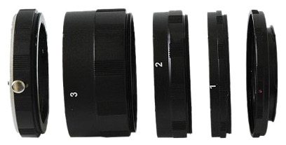 Набор из 3-х удлинительных макроколец Phottix для Canon для макросъемки устанавливается между объективом и корпусом фотокамеры, что значительно увеличивает рабочий отрезок (расстояние между матрицей и объективом) и позволяет объективу фокусироваться с более близкого расстояния. Макрокольца не имеют ни линз, ни электронных контактов - поэтому не вносят в изображение оптических искажений и не влияют на качество изображения. Так как макрокольца не имеют электронных контактов, то их можно использовать только в ручном режиме, без поддержки автофокуса. В состав набора входят два адаптера, один из которых крепиться непосредственно к байонету камеры, второй - к объективу. Характеристики: