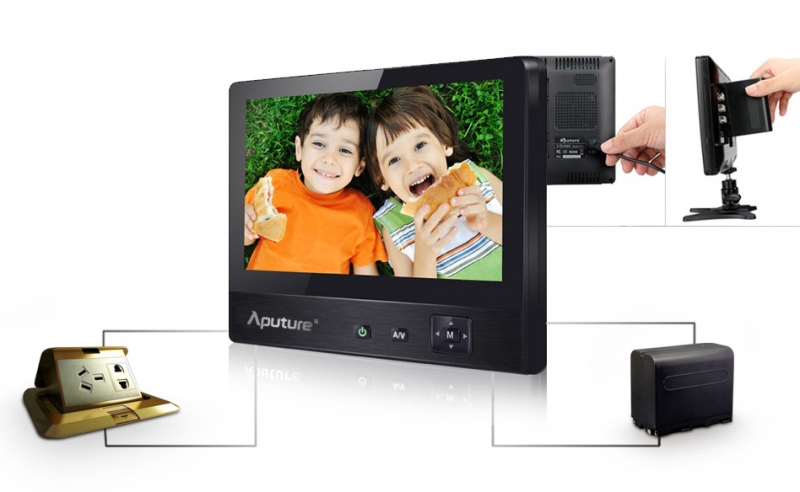 - Питание монитора может производиться от AC адаптера и литиевой батареи. Используйте AC адаптер, когда есть доступ к сети и литиевую батарею при съемки на улице. Литиевые батареи так же совместимы со светодиодными видеоосветителями Amaran. Также V-Screen может заряжать батареи, когда подключен к сетевому адаптеру, что позволяет обходиться без зарядного устройства.