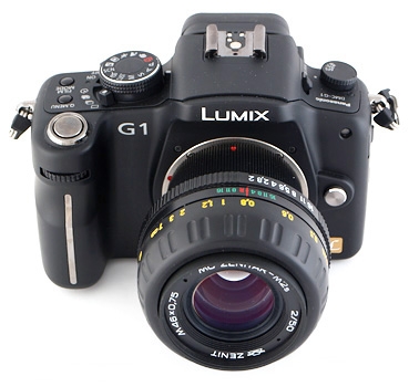 К фотоаппарату объектив крепится с помощью адаптера M42 - Micro 4/3.