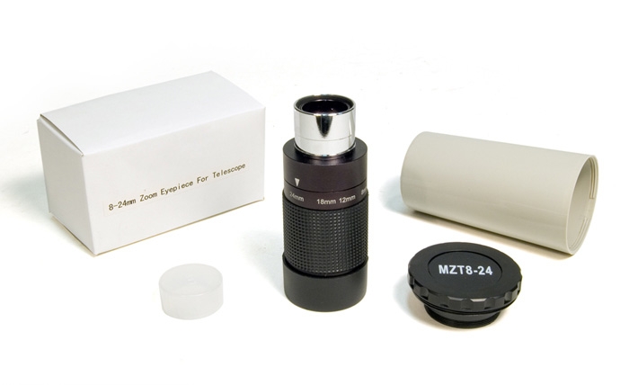 Оптическая схема окуляра позволяет изменять фокусное расстояние в диапазоне 8–24 мм. На корпус окуляра нанесена специальная шкала, которая позволяет с максимальной точностью выставить желаемое фокусное расстояние. Все оптические компоненты окуляра изготовлены из стекла, на них нанесено многослойное просветляющее покрытие, что гарантирует отличное качество изображения.