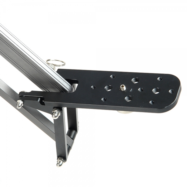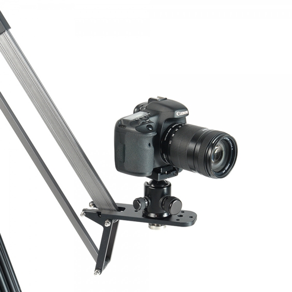 Портативный телескопический кран предназначен для использования с DSLR и видеокамерами весом до 5 кг. Кран устанавливается на любую опору (штатив, автоспайдер и т.д., опора приобретается отдельно) с резьбовым креплением 3/8". Уникальная конструкция с возможностью быстрой (менее 1 минуты) сборки и разборки, длина в сложенном виде всего 1 м. Максимальный вынос стрелы 1,6 м. Прочная и жесткая конструкция, используется алюминиевый профиль прямоугольного сечения. Прямоугольное сечение стрелы обеспечивает наибольшую прочность конструкции на изгиб и отсутствие вибраций во время работы с тяжелыми камерами, при этом кран имеет сравнительно небольшой вес для своих параметров. Благодаря телескопической конструкции базы для груза-противовеса, обеспечивается быстрая балансировка системы. Груз приобретается отдельно (вес груза подбирается исходя из веса камеры*, внутренний посадочный диаметр груза - 26 мм), замок для крепления груза - в комплекте. Основание крана представляет собой поворотный механизм с подшипниками качения, это позволит устанавливать кран на любые штативы с резьбой 3/8" и производить панорамирование на 360˚, без необходимости покупки дополнительных штативных голов. Винтовые зажимы надежно фиксируют положение поворота и наклона стрелы. Камера устанавливается на площадку крана с помощью стандартных резьбовых соединений 1/4" или 3/8". В комплекте нейлоновая сумка на молнии, поролоновые стенки образуют ячейки обеспечивающие бережную транспортировку и хранение.