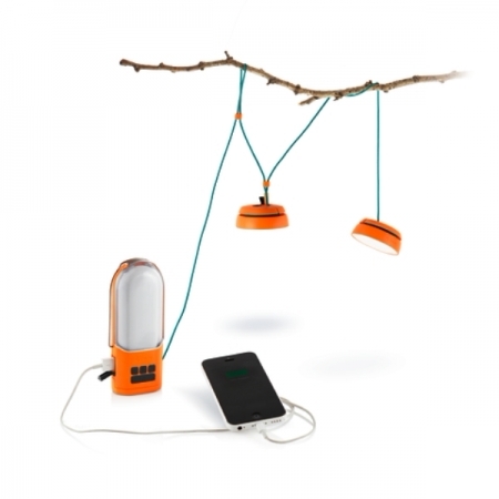 - Отдельно, сложенные в виде компактной сферы, к аккумулятору прилагаются две лампы SiteLight, которые можно соединить между собой, подвесить к потолку или развесить на ветках деревьев. Лампы буду освещать пространство под собой на расстоянии до 3 м. Угол наклона ламп и длину провода можно регулировать. Общая длина провода – 25 м, что позволяет осветить значительную площадь;