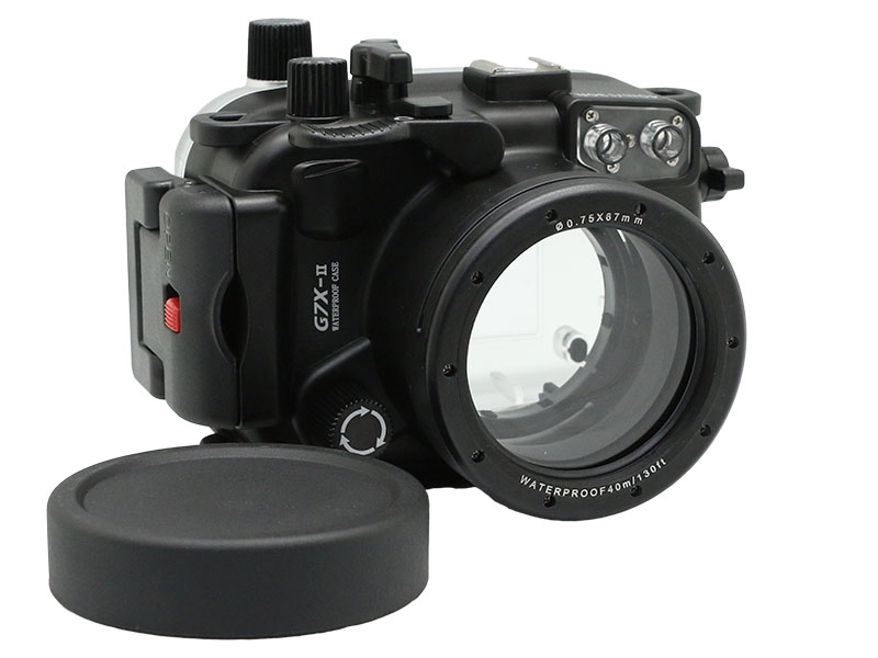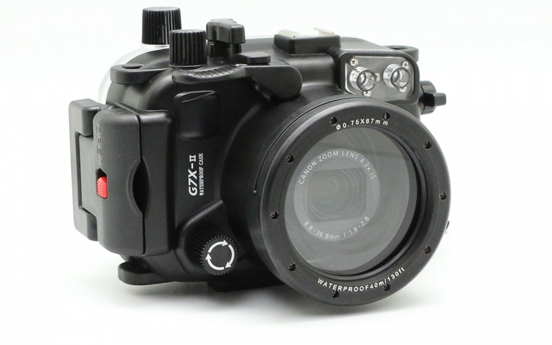 Подводный бокс (аквабокс) Meikon для фотоаппарата Canon Powershot G7x II Подводный бокс (аквабокс) для цифрового фотоаппарата Canon Powershot G7x II. - глубина погружения 40 метров, при изготовлении использованы материалы - прочный поликарбонат, закаленное стекло, нержавеющая сталь. К боксу предусмотрено подключение внешних подводных вспышек через оптоволоконный кабель, а также подсоединение насадок и фильтров. Бокс прошел сертификацию IPX8 & CES. Все боксы прошли проверку в барокамерах.
