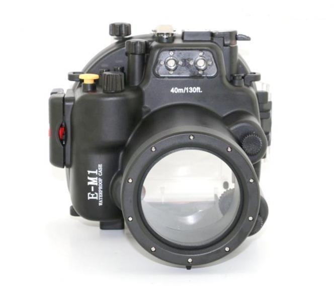 Подводный бокс (аквабокс) Meikon для фотоаппарата Olympus OM-D E-M1 (12-40 мм) Аквабокс для фотоаппарата Olympus OM-D E-M1 с объективом 12-40 мм. Черный и прозрачный поликарбонат. Глубина погружения до 40 метров.