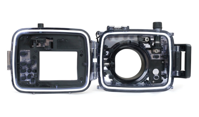 Подводный бокс (аквабокс) для фотоаппаратов Sony Sony CyberShot RX100 моделей I-V - выполнен из сверхпрочного поликарбоната с дополнительными ребрами жесткости повышающими крепкость бокса, глубина погружения 60 метров.