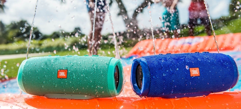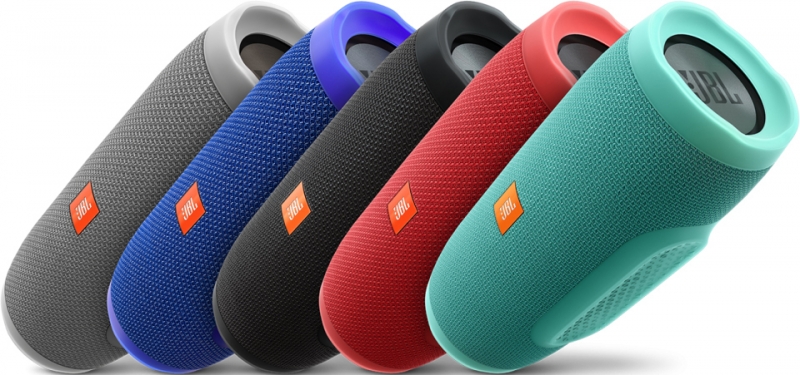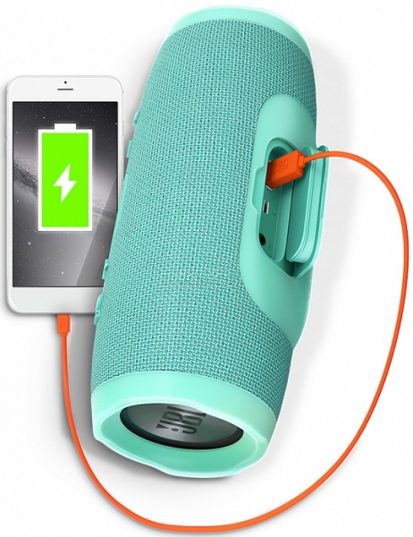 Портативная акустическая система JBL Charge 3 JBL Charge 3 представляет собой невероятно стильную, с интересным запоминающимся эргономичным дизайном, водонепроницаемую портативную акустическую систему. Она поддерживает беспроводную передачу данных и может быть сопряжена со множеством современных девайсов, поддерживающих технологию Bluetooth. Также колонка способна обеспечить необходимым зарядом любое совместимое устройство посредством разъема USB. Зарядка осуществляется даже тогда, когда JBL Charge 3 выключена. Благодаря своей необычной эргономичной конструкции акустическую систему JBL Charge 3 можно устанавливать как в горизонтальном, так и в вертикальном положении (кроме той стороны, где расположен фазоинвертор). За счет водонепроницаемости корпуса и благодаря прорезиненным элементам беспроводной колонки наслаждаться любимыми композициями теперь можно и под дождем, и у бассейна, при этом не беспокоясь за ее работоспособность. Кнопки управления вынесены в верхнюю часть и выполнены из резины в форме значков функций, за которые они отвечают. JBL Charge 3, как и все продукты именитого бренда, имеет высокое качество звука, сравнимое с домашней акустикой. Теперь вам не придется находится в помещении, чтобы насладится отличным звуком стереосистемы — с JBL Charge 3 вы сможете ощутить легендарную мощь, чистоту и высокую точность передачи аудиоконтента в любом месте. Встроенный аккумулятор на 6000 мАч продлит это удовольствие на 20 часов без перерыва.