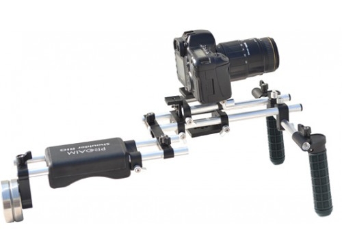 Противовес равномерно распределяет массу устройства, что помогает предотвратить появление физической усталости во время съемки. 15 мм скобка позволяет оператору держать камеру как на уровне глаз, так и в стороне. Эта стабилизирующая система может быть целиком установлена на штатив при помощи специальной площадки, которая входит в комплект. Телескопические рукоятки с прорезиненными ручками снимают нагрузку с рук оператора во время съемки. Наплечник также предотвращет усталость. Камеру возможно настраивать по высоте. Быстросъемная площадка также регулируется в горизонтальной поверхности. Плечевой упор совместим с 15 мм рельсовой опорой.