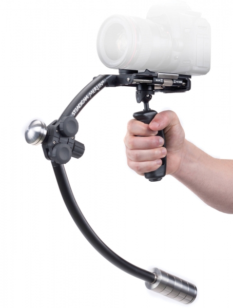 Операторская система стабилизации камеры Steadicam Merlin — это Ваш профессиональный помощник. Как известно, жизнь не стоит на месте. Но теперь Вам значительно проще не отставать от стремительно меняющегося мира с новой сверхлегкой, ультракомпактной системой стабилизации. Ручная операторская система стабилизации камеры Merlin это то, что Вы ждали с момента появления видеокамер. Эта система была разработана самим Гарреттом Брауном, тем самым волшебником, который полностью изменил подход к кино- и видеопроизводству своей оригинальной системой стабилизации. Steadicam Merlin может обеспечить такую же плавность перемещения, как его старшие и более дорогие собратья, которые используются на многочисленных киноплощадках Голливуда. Эта система стабилизации камеры позволяет Вам создавать «летящий» кадр везде, где вам это необходимо – спускаетесь ли Вы вниз или поднимаетесь по ступенькам, снимаете в закрытом помещении или на открытом пространстве, или пробираетесь через толпу. Быстросъемное крепление позволяет мгновенно устанавливать Вашу камеру на стедикам или убирать его оттуда для ведения съемки со штатива. Steadicam Merlin сконструирован таким образом, чтобы снизить нагрузку на руки оператора. Он такой легкий, что весит меньше, чем банка газировки. В собранном и полностью готовом к работе состоянии он весит менее 1 кг. Его уникальная конструкция обеспечивает надежную стабилизацию камеры и позволяет использовать объективы с большим фокусным расстоянием, что по достоинству оценят профессионалы. Уникальная система контрбаланса из 2-х экстендеров регулировки весового баланса увеличивает инерционную стабильность стедикама. А также позволяет произвести точную настройку в зависимости от веса используемой камеры.