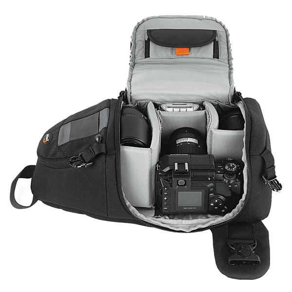• Вместимость Lowepro SlingShot 100 AW: SLR камера со сменным компактным объективом с переменным фокусным расстоянием, 1-2 дополнительных объектива или вспышка.