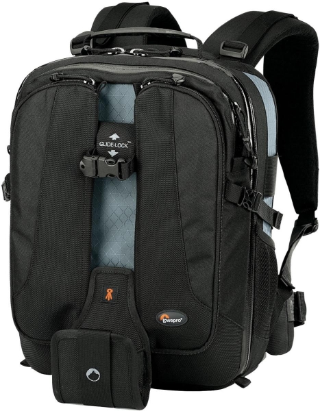 Серия рюкзаков Vertex AW, разработанная для профессиональных фотографов и фотожурналистов, специально ориентирована на использование в путешествиях. Прочная непротирающаяся и водоотталкивающая ткань рюкзака обеспечивает долгий срок службы и надежную защиту от внешних механических повреждений. Модель имеет водонепроницаемую застежку молнию и защитный чехол All Weather Cover™, которые надежно защитят оборудование от попадания влаги и пыли. Внутренне пространство рюкзака моделируется при помощи передвижных перегородок, что позволяет подогнать рюкзак под любую комплектацию фотооборудования. Вместимость Lowepro Vertex 100 AW: 1-2 профессиональные камеры или среднеформатная система; 3-5 объективов до 200 мм F/2.8, штатив, вспышка и электронные аксессуары. Размер отделения под ноутбук: 28х5х35 см. Система регулируемых плечевых ремней эргономичная, подгоняется под индивидуальные потребности и благодаря этому значительно снижает нагрузку на позвоночник даже при полной загрузке рюкзака. Два внешних передних кармана позволяют хранить все аксессуары в одном месте. Специальный крепежный механизм позволяет закрепить штатив: трипод, монопод или ледоруб.