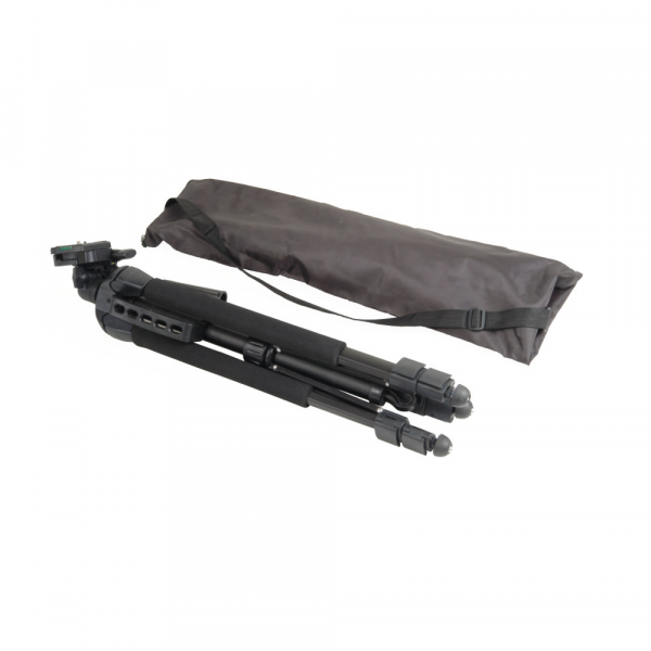 Штатив Falcon Eyes Travel Line 4500 Штатив Falcon Eyes Travel Line 4500 универсальный 3-секционный алюминиевый штатив с выдвижной центральной колонной. Ножки штатива изготовлены из алюминиевого профиля, а клипсовые зажимы секций — из прочного ABS пластика. Максимальная высота 155 см (с выдвинутой центральной колонной), минимальная рабочая высота — 57 см, длина в сложенном виде — 58 см. Купить штатив Falcon Eyes Travel Line 4500 можно фотографам, которые работают на выезде, ведут репортаж из гущи событий и нуждаются в лёгкой и компактной опоре для своей камеры. Фиксация камеры В основании головки расположен винтовой фиксатор горизонтального панорамирования. Ручка штатива предназначена не только для быстрого наведения камеры на «цель», но и винтовым фиксатором угла наклона головки. Длина ручки — 15 см. Оперативно повернуть и зафиксировать фотокамеру для съёмки в вертикальной ориентации (или на произвольный угол до 90°) возможно благодаря шарнирному креплению быстросъёмной площадки. Фиксация угла наклона площадки — винтовая. Головка оснащена быстросъёмной площадкой с противоскользящими накладками и встроенным пузырьковым уровнем. На площадке расположен винт с резьбой 1/4″ и подпружиненный штифт. Размер площадки 51×71 мм. Выдвижная центральная колонна Для изменения высоты установки камеры без изменения длины его ножек, штатив имеет выдвижную центральную колонну. Фиксация положения колонны — винтовая. Винт фиксации расположен в «короне» штатива. Благодаря верхней растяжке, подготовка штатива к работе и его выравнивание на поверхности происходит быстро и легко. Растяжка фиксируется в выбранном положении и обеспечивает устойчивость во время работы со штативом; кроме того, меняя положение фиксатора растяжки, можно регулировать (и фиксировать) угол раскрытия ножек штатива. Для дополнительного усиления в основании колонны находится крюк для груза. 2 в 1. Штатив и монопод Внутри центральной колонны находится телескопический 5-секционный раздвижной монопод высотой от 47 до 159 см, который незаменим в репортажных съемках. Для извлечения монопода необходимо отпустить винт в «короне» штатива и просто вытащить его из корпуса цетральной колонны. Фиксация секций монопода на рабочей высоте происходит вращением их по часовой стрелке относительно друг друга. Три секции ног штатива Три секции ножек штатива изготовлены из алюминиевого профиля с анодированным покрытием, которое обеспечивает сопротивление коррозии. Секции ног надежно фиксируются клипсовыми замками из ABS пластика. Ножки штатива снабжены накладками-рукавами из вспененного материала. Это обеспечивает комфортное удержание штатива в холодное время года. Для переноски штатива в его основании находится пластиковая рукоятка. На концах штативных ног размещены пятки с резиновыми наконечниками и шипами. Пузырьковые уровни Штатив оборудован двумя пузырьковыми уровнями. Один расположен в основании штатива, а второй на быстросъёмной площадке. С их помощью выставить камеру в горизонтальной плоскости не составит труда. Чехол для транспортировки Для удобной транспортировки и хранения штатив комплектуется сумкой-чехлом на молнии с регулируемым по длине наплечным ремнём.