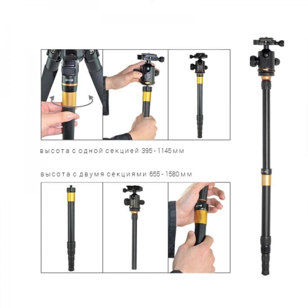 - Ноги штатива состоят из 5 секций и складываются телескопически.