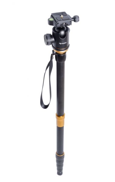 - Одна из трёх ног штатива, не имеющая поролоновую накладку, откручивается, превращая штатив в многофункциональный монопод или альпеншток