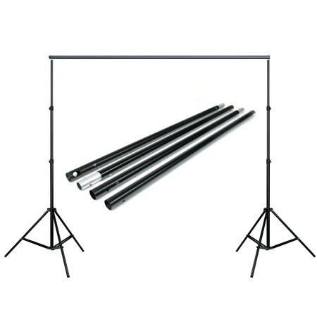 Мобильный комплект из 2-х стоек и перекладина из 4х секций для установки фона шириной до 300 см.