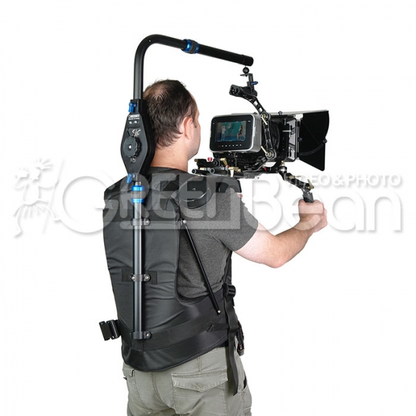 Easy Arm 58 Strong – система поддержки камеры, которая разработана в качестве альтернативы стабилизаторам с карданным шарниром и как вспомогательное устройство для использования с камкордерами или плечевыми упорами. Подпружиненный трос с регулируемым усилием, к которому подвешена камера, обеспечивает динамическое равновесие благодаря силе тяжести и выступает в качестве демпфера для компенсации дрожания камеры при ходьбе. Разгрузочный жилет на основе усиленного металлического каркаса снижает нагрузку на плечи, руки и позвоночник, обеспечивает поддержку пояснице и позволяет оператору осуществлять съемку продолжительное время. Жилет перераспределяет нагрузку к бедрам, освобождая спину и плечи, что помогает сосредоточиться на фактической съемке. Внутренняя сторона жилета изготовлена из дышащей ткани и вентилируемого мягкого уплотнителя, это обеспечит комфорт при съемке. Для стирки или замены после продолжительного использования уплотнитель из вспененного материала можно извлечь, расстегнув специальную молнию. Длина плечевых лямок, поясного и нагрудного ремня регулируется. Спинка жилета на жестком каркасе усилена двумя металлическими распорками, упирающимися в поясной ремень. Easy Arm 58 Strong можно использовать с камкордерами, видеокамерами, фотокамерой на риге, камерой в кейдже или с гироскопическим стабилизатором, максимальная нагрузка 5-8 кг. EasyArm снижает статическую нагрузку, сохраняет скорость и мобильность, одновременно с этим обеспечивает стабилизированную съемку без дрожаний кадра. EasyArm дает свободу съемки с разных позиций – плеча, бедра и даже с колена. Рекомендуется для съемок репортажей, свадеб, спортивных мероприятий, рекламных роликов, фильмов, и других событий, где необходимо снижение нагрузки на оператора и свобода передвижения без дрожаний кадра.