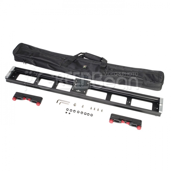 Слайдер GreenBean Glide Track 100 Production GreenBean Glide Track 100 Production - слайдер для тяжелых условий эксплуатации и профессионального использования в кинопроизводстве, предназначен для точного, плавного, бесшумного перемещения камеры весом до 20 кг, длина направляющей 98,5 см. Направляющая из цельного алюминиевого профиля Направляющий рельс слайдера изготовлен из цельной алюминиевой заготовки методом экструзии (продавливание расплава алюминия через формообразующий экструдер), что обеспечивает профилю высокие характеристики прочности и жесткости. Безлюфтовая каретка Ролики на стальных подшипниках расположены под разными углами (по 4 на каждой стороне) и двигаются по внутренней стороне направляющей, что гарантирует продолжительное использование и стабильный безлюфтовый ход. На каретке находятся 11 монтажных резьбовых отверстий 1/4" и 3 резьбовых отверстия диаметром 3/8", которые позволяют размещать на каретке аксессуары и вспомогательное оборудование. Центральное отверстие 3/8" без резьбы предусмотрено для крепления штативной головы (винт в комплекте). Большое количество монтажных отверстий обеспечивает универсальность установки и использования слайдера. Дополнительно можно приобрести базу с чашей GreenBean Video Base 100/75 для установки штативных голов с шаровым основанием. Двусторонний стояночный тормоз Каретка оборудована стопорным винтом с двусторонним стояночным тормозом, при завинчивании рукоятки происходит одновременный выпуск двух тормозных колодок, которые надежно фиксируют каретку, благодаря этому слайдер можно использовать даже с тяжелыми профессиональными камерами. Готов к установке на любые поверхности Слайдер GreenBean Glide Track Production можно использовать на любых поверхностях и в любых условиях. Возможна установка на штативы или на съемные опоры двух видов из комплекта поставки – короткие резиновые ножки и кронштейны с вывинчивающимися поворотными ножками. На направляющей рельсе предусмотрены спаренные резьбовые отверстия диаметром 1/4" и 3/8", отверстия расположены в 5 точках для установки слайдера под разными углами наклона на штативы. Короткие резиновые опоры можно использовать на ровных поверхностях, где не требуется выравнивание слайдера по уровню горизонта. Кронштейн с ножками позволит установить слайдер на более сложных поверхностях, где требуется тонкая настройка уровня. Ножки на кронштейне наклоняются, регулируются по высоте на 15 мм и поворачиваются на 360˚ вокруг оси крепления. Ножки соединяются с кронштейном с помощью зубчатой муфты, препятствующей проскальзыванию. В узле крепления ножки находится прижимная пружина, если ослабить зажим, то ножка не потеряет своего положения, но позволит отклонить ее ступенчато через зубчатый механизм. На концах ножек расположены наконечники с резиновой опорой