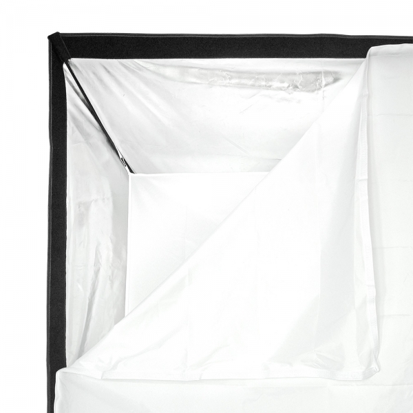 Установленный на приборе софтбокс можно поворачивать на 360 градусов, выбранное положение фиксируется винтом на адаптере. Внешний и внутренний рассеивающие экраны изготовлены из тонких жаропрочных синтетических материалов, крепятся на В комплекте с софтбоксом поставляются соты. С помощью липучки (по всему периметру) соты крепятся к «козырьку» софтбокса. Соты применяется для формирования ограниченного и направленного светового потока с плавным светотеневым переходом от центра к краю светового пятна. Закрытая конструкция позволяет избежать нежелательных бликов и потерь светового потока. Отражатель, с серебристой тканью внутри, обеспечивает равномерную засветку рассеивателя, который в свою очередь, благодаря большой поверхности, смягчает формируемые тени. Дополнительный внутренний диффузор улучшает равномерность светового потока. Наконечники на упругих металлических спицах не повреждают тканевые спицедержатели софтбокса и облегчают сборку конструкции. В комплекте чехол.