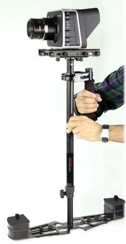 Этот стедикам один из наиболее высококачественных, легких среди аналогичных устройств, представленных на современном рынке видео товаров. Он оснащен подшипниками, с помощью которых возможно вращение камеры на 360 градусов вокруг своей оси. Устройство выполнено из сверхпрочного алюминия, имеет телескопическую конструкцию. Невероятно удобно при динамичной съемке, позволяет бежать, подпрыгивать, спускаться или подниматься по лестнице во время съемки. Не смотря на это, тряска в кадре абсолютно отсутствует.