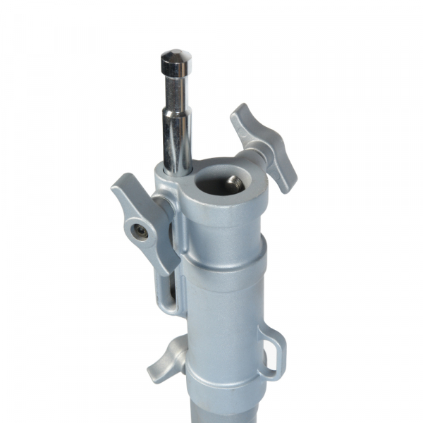 • Стальной выдвижной шпигот 5/8” с винтовым креплением и отверстие 1⅛” (junior) позволяют установить оборудование весом до 20 кг. Для крепления тросика, страхующего установленное оборудование, предусмотрена металлическая проушина.