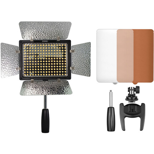 Осветитель светодиодный YongNuo YN-160 III LED Третья версия мощного и компактного видеосвета, предназначенного для эксплуатации видео- и DSRL-камерами. По сравнению с предыдущей моделью, он отличается увеличенным количеством светодиодов – 192 против 160. Соответственно возросла и мощность – с 10 до 12 Вт. Кроме того, появился слот для внешнего питания и дисплей. В настройках осветителя теперь есть возможность менять и запоминать цветовую температуру, а также плавно или быстро регулировать яркость. С целью оптимизации функциональности из комплектации осветителя Yongnuo YN-160 III были убраны микрофон и слот для АА батареек. В то же время появилась удобная индикация заряда аккумулятора.