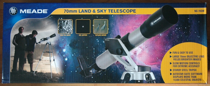 Телескоп MEADE NG70-SM - любительский телескоп-рефрактор для астрономических и наземных наблюдений. В свое время многие астрономы с мировым именем начинали открывать Вселенную с помощью практически аналогичных инструментов. NG70-SM обладает достойными оптическими показателями и потребительскими свойствами. Ахроматический объектив 70мм обеспечивает качественное резкое изображение по всему полю а диагональная призма, входящая в комплект, позволяет комфортно наблюдать наземные объекты, кроме этого в комплект поставки входит два окуляра и диск с электронным планетарием.