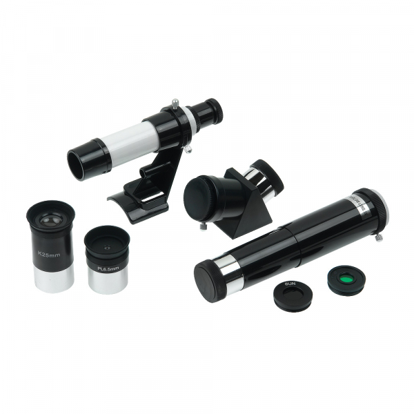 Телескоп Veber 400/70 рефрактор с рюкзаком Veber 400/70 – простой и надежный линзовый телескоп-рефрактор для начинающих любителей астрономии, как детей, так и взрослых. Справиться с этой моделью сможет любой: достаточно установить трубу на алюминиевую треногу – и прибор готов к работе. Уход за телескопом сводится к протиранию объектива и окуляра специальной салфеткой. Главное аккуратно обращаться с прибором, и он прослужит долгие годы (на него распространяется пожизненная гарантия). Что можно увидеть в телескоп Veber с ахроматическим объективом диаметром 70 мм? Его предельная звездная величина 11,3m. Значит даже в городе, где небо засвечено фонарями и рекламными щитами, в телескоп можно рассмотреть кратеры и моря на Луне, искусственные спутники Земли, крупные астероиды и кометы. Чтобы наблюдать за объектами дальнего космоса лучше выехать за город. Компактный телескоп, помещающийся в небольшом рюкзаке, рассчитан именно на такого, легкого на подъем астронома. Без лишней подсветки и городского смога он сможет наблюдать за Сатурном и Юпитером, метеоритным дождем и Туманностью Андромеды. Смартфон, присоединенный с помощью адаптера к окуляру, позволит зафиксировать самые интересные моменты. Оптические характеристики конструкции почти не уступают характеристикам более сложных и дорогих моделей. Труба с объективом диаметром 70 мм и фокусным расстоянием 400 мм (светосила 1/5,7) дает четкую, контрастную картинку по всему полю зрения. В ней нет конвективных потоков теплого и холодного воздуха и лишних элементов, способных деформировать изображение и снизить общее светопропускание телескопа. Темное покрытие внутри трубы поглощает переотраженные от ее внутренней поверхности лучи света, что позволяет сохранить высокий контраст картинки. Увеличение от 16х до 185х позволяет детально рассматривать объекты, находящиеся на разном удалении от наблюдателя. Прямое изображение, которое дает телескоп, подходит для наблюдения не только за астрономическими объектами, но и за вполне земными, поэтому прибор можно использовать как зрительную трубу большой мощности. Благодаря монтировке азимутального типа его удобно наводить на объекты, перемещая с помощью рукоятки по вертикали и горизонтали. Точная и плавная фокусировка, без проскальзывания, обеспечена кремальерой (реечным механизмом). Принадлежности для работы с телескопом не нужно подбирать, всё необходимое есть в комплекте. В первую очередь это окуляры Pl6,5 и К25 с мягкими наглазниками, защищающими от боковой засветки. Если наблюдатель носит очки, то для более комфортной работы он может загнуть наглазник, чтобы уменьшить расстояние между окуляром и зрачком. Обязательно пригодятся и линза Барлоу 3х, повышающая кратность окуляров в 3 раза, и фильтры – солнечный, снижающий интенсивность света до безопасных значений, и лунный, увеличивающий контраст. Легкий алюминиевый штатив для телескопа – неприхотливый и устойчивый. Телескопические 3-секционные ноги позволяют подобрать оптимальную высоту штатива – от 40 до 124 см. Весь комплект находится в рюкзаке. Бережное размещение трубы, треноги и комплекта принадлежностей обеспечивают мягкие амортизирующие стенки, карманы и фиксирующие стяжки.