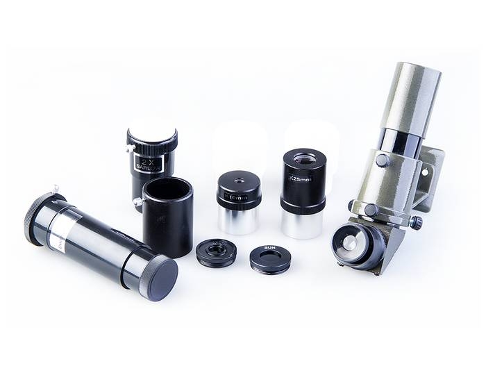 Модель для серьезных, но начинающих любителей астрономии. Зеркало диаметром 114мм достаточно велико, чтобы собирать много света (в этот телескоп вы сможете увидеть объекты солнечной системы во всех подробностях - таких как щель Кассини в кольце Сатурна, лунные кратеры размером ок.5 км, слабые звезды до 13 m зв. величины). Габариты прибора довольно внушительные, длина трубы 86 см. Телескопы, построенные по схеме Ньютона, обычно дают перевернутое изображение, но Veber 900*114 оснащен 1,5х выпрямляющем окуляром для получения прямого изображения. С окуляром K25 вы получите увеличение 36х, с которым удобно вести наземные наблюдения. При этом ближняя точка фокусировки составит 22 м. Очень стильное исполнение телескопа: черная глянцевая металлическая труба в обрамлении выглядящих брутально крышек, колец и деталей монтировки, покрашенных фактурной порошковой эмалью, как это принято делать у профессиональных оптических приборов. Удобный искатель (увеличение 6х) расположен рядом с окуляром. Прибор оснащен серьезной монтировкой немецкого типа EQ3 с возможностью подключения электропривода (для постоянного наблюдения за выбранным объектом). Многие другие фирмы, в целях удешевления, устанавливают такие телескопы на монтировку EQ1, которая является для них откровенно слабой. Вся конструкция: телескоп-монтировка-штатив должна быть достаточно жесткой и гасить дрожания и колебания которые мешают наблюдениям. В данном телескопе алюминиевый штатив имеет еще и дополнительные распорки, на которые устанавливается столик для аксессуаров.