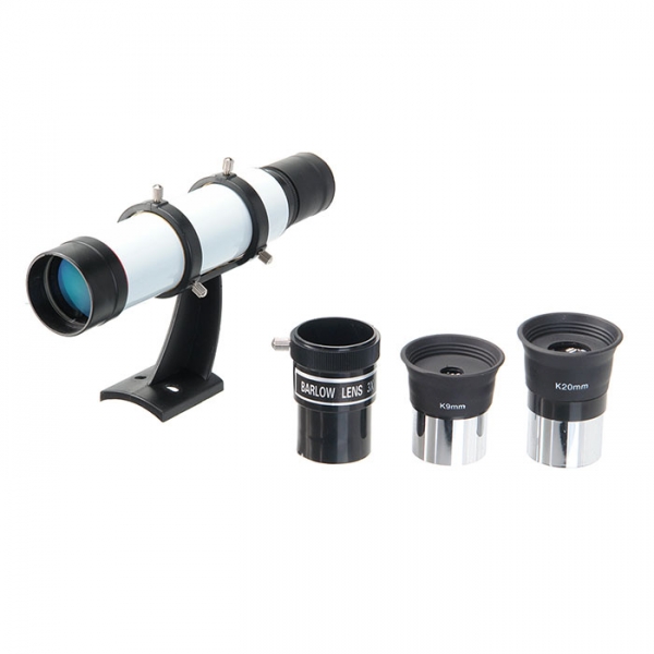 Телескоп Veber Polarstar 700×70 EQ8 — это линзовый телескоп (рефрактор), который дает четкое и контрастное изображение, хорошо подходит для путешествий. Просветленный ахроматический объектив с диаметром 70 мм, собирает в два раза больше света, чем 50 мм и позволяет наблюдать не только небесные, но и очень удаленные земные объекты. Картинка резкая, без окрашенности изображения по краю поля зрения. В этот телескоп вы сможете увидеть детали на дисках планет, кратеры Луны размером 5–6 км, многие туманности и звездные скопления (вплоть до 12 m звездной величины). Для земных наблюдений мы рекомендуем использовать окуляр K -20, с которым увеличение телескопа будет 35x, при этом ближняя точка фокусировки составит 12,5 м. Обратите внимание, этот телескоп дает прямое (не перевернутое) изображение. Кроме того, наличие в окулярном блоке 45 градусной оборачивающей призмы Шмидта (а не диагонального зеркала, как в аналогичных моделях других фирм), делает изображение не зеркальным (где левое и правое меняются местами), а таким, каким вы видите его невооруженным глазом. Для удобства наблюдения (из положения стоя или сидя), окулярную часть вместе с призмой можно поворачивать, 8 фиксированных положений. С помощью искателя (входит в комплект, увеличение 6х, крепится к телескопу) можно быстро навестись на цель наблюдения. Телескоп снабжен экваториальной монтировкой EQ8 без единой пластиковой детали с возможностью микрометрического наведения телескопа по обеим осям. Два слова о том, как ей пользоваться: одна из осей экваториальной монтировки устанавливается параллельно оси вращения Земли, благодаря этому суточное вращение неба может быть компенсировано вращением телескопа вокруг только одной оси монтировки, но в сторону, противоположную вращению Земли. Иными словами, «вести звезду» вы можете вращая только одну рукоятку наведения (более подробно см. инструкцию). Телескоп поставляется с алюминиевым штативом с возможностью регулировки высоты. Распорки для ножек служат не только для повышения устойчивости, но и в качестве подставки под полочку для аксессуаров (идет в комплекте). Сумка для переноски, в которую укладывается весь комплект, позволяет безопасно (для оптики и внешнего вида) транспортировать прибор для выездов на природу или при походах в гости.