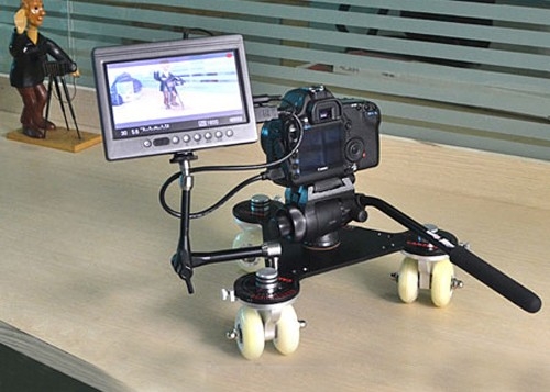 Эта модель тележки отличается своей портативностью, гибкостью и в то же время прочностью, не требует сборки. На сегодняшний день она считается одной из лучших моделей среди аналогов, представленных на рынке видео товаров. Тележку можно двигать в любом направлении, в том числе вращать вокруг оси на 360º. Позволяет вести съемку из нижнего ракурса. Еще один ее преимуществом является возможность увеличить размер площадки. Это очень удобно, так как дает возможность установить дополнительное оборудование по желанию оператора. Тележку можно устанавливать на любую поверхность, с ней можно работать как в студии, так и на открытом пространстве.