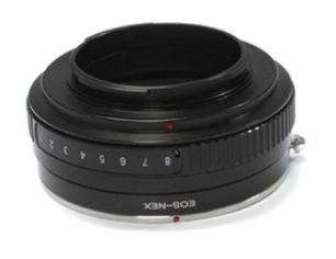 Tilt Адаптер Canon EF - Sony E NEX адаптер с наклоном оптической оси, предназначенный для установки объективов с креплением Canon EF на фотоаппараты системы Sony E NEX (кроме полнокадровых). Управление диафрагмой и фокусировкой происходит вручную, нет возможности использования автофокусировки, все настройки производятся на объективе. Переходник имеет 8 степеней наклона (от 0 до 8 градусов). Адаптер превращает любой обычный объектив в объектив с наклоном, который используется для коррекции глубины резкости и оптических искажений.