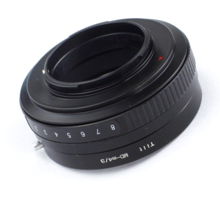 Tilt Адаптер Minolta MD - Micro 4/3 адаптер с наклоном оптической оси, предназначенный для установки объективов с креплением Minolta MD на фотоаппараты системы Micro 4/3. Управление диафрагмой и фокусировкой происходит вручную, нет возможности использования автофокусировки, все настройки производятся на объективе. Переходник имеет 8 степеней наклона (от 0 до 8 градусов). Адаптер превращает любой обычный объектив в объектив с наклоном, который используется для коррекции глубины резкости и оптических искажений.