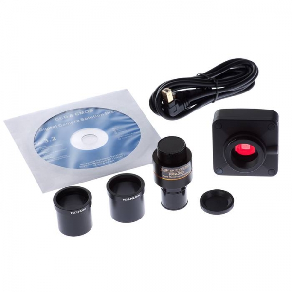 Цифровая CMOS (КМОП) камера на базе сенсора Aptina MT9T001 (формат ½.4») с разрешением 3488×2616 пикселей (скорость передачи данных составляет 1,9 кадров в секунду). При разрешении 1744×1308 — 8 кадра в секунду, при разрешении 872×654 — 27 кадров в секунду. Рекомендуется для совместной работы с микроскопами серии Микромед 3, Микромед МЕТ, Микромед ПОЛАР 1, ПОЛАР 2 и ПОЛАР 3, Микромед И. Используется для вывода изображения исследуемого на микроскопе объекта на экран компьютера. Благодаря адаптерам, которые входят в комплект камеры, данную камеру можно использовать со всеми микроскопами Микромед. Окулярный адаптер 0,5х имеет посадочный диаметр 23,2 мм. Он может быть снят. Крепление самой камеры стандартное — C-Mount, поэтому с ней будут совместимы любые другие адаптеры, имеющие крепление аналогичного стандарта, например адаптер 0,37 и 0,75. В комплект входят переходники для работы с микроскопами с посадочными диаметрами 30 мм и 30.5 мм.